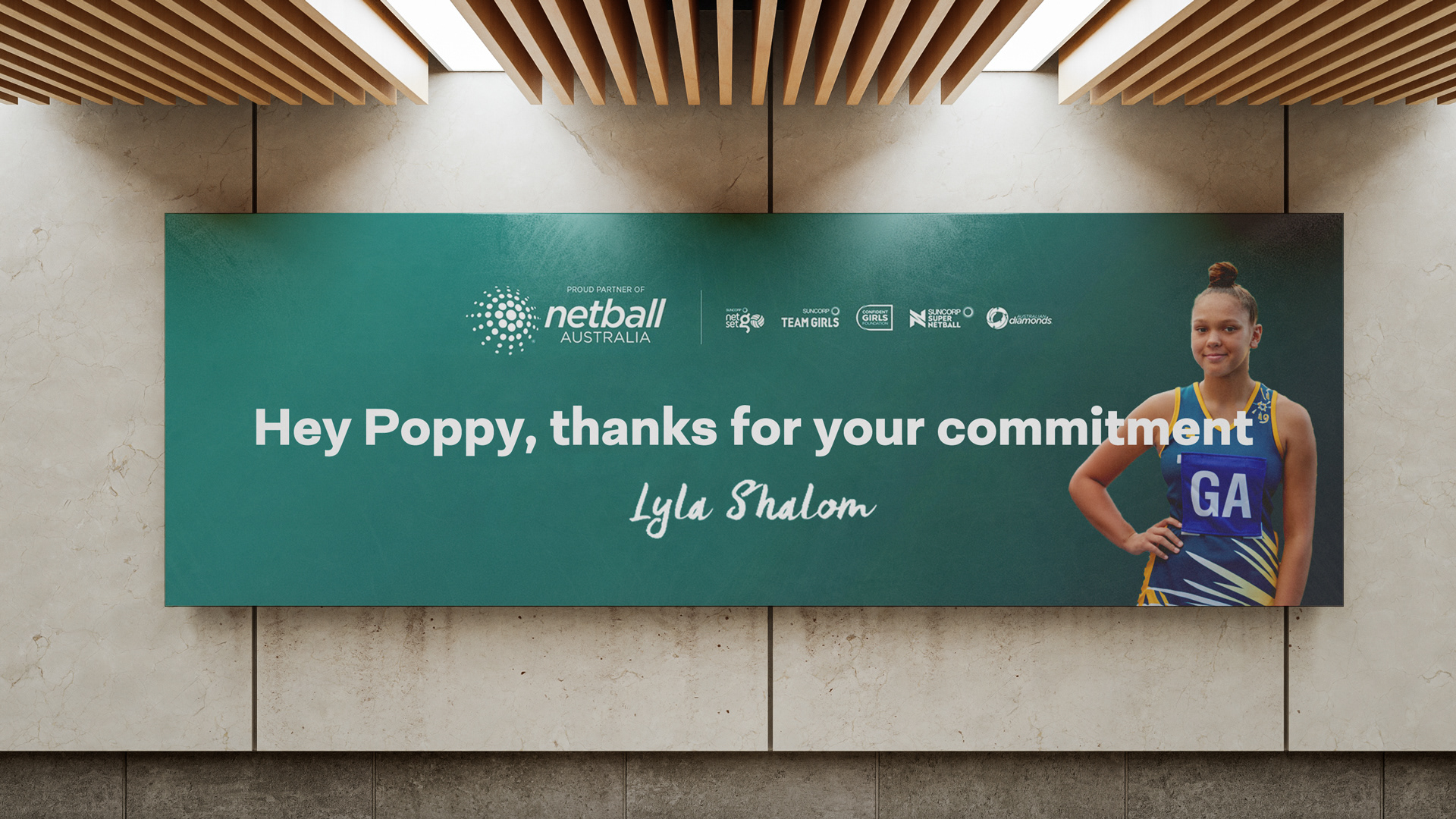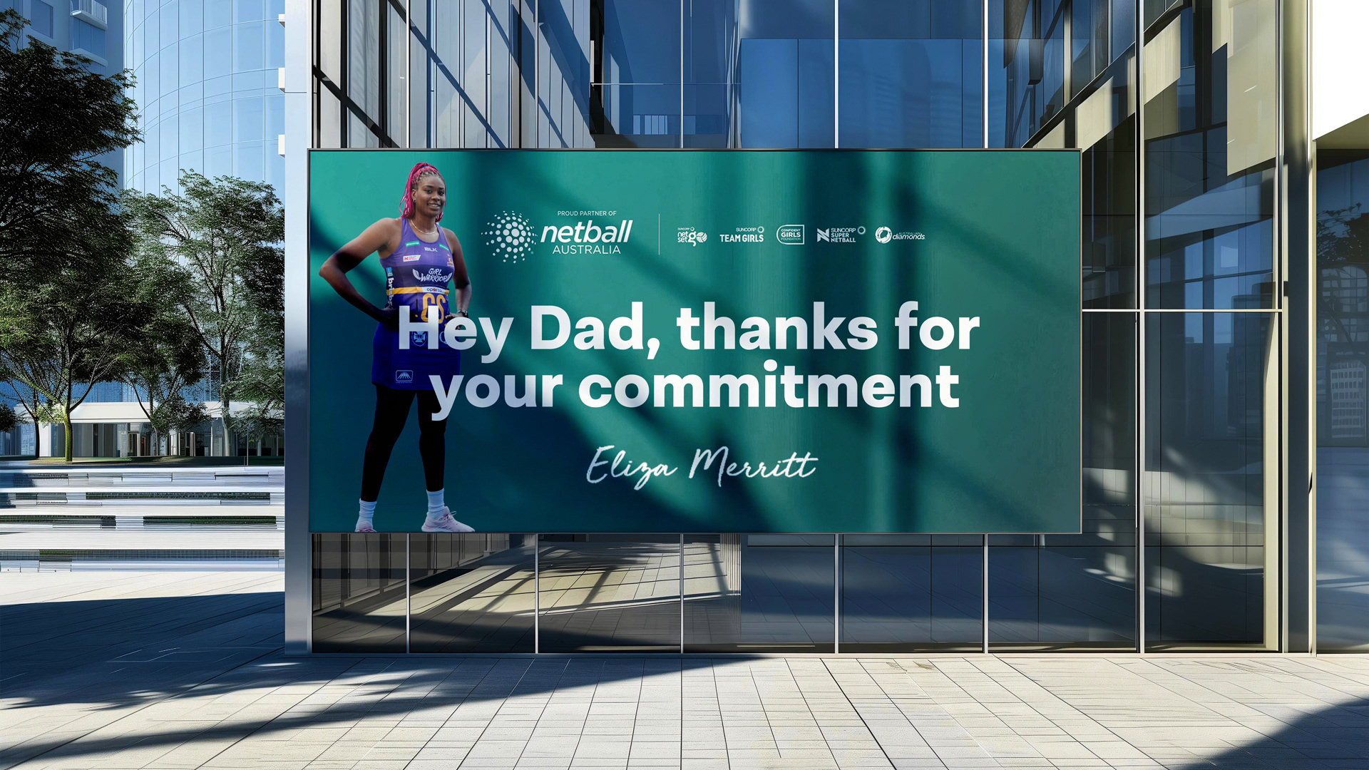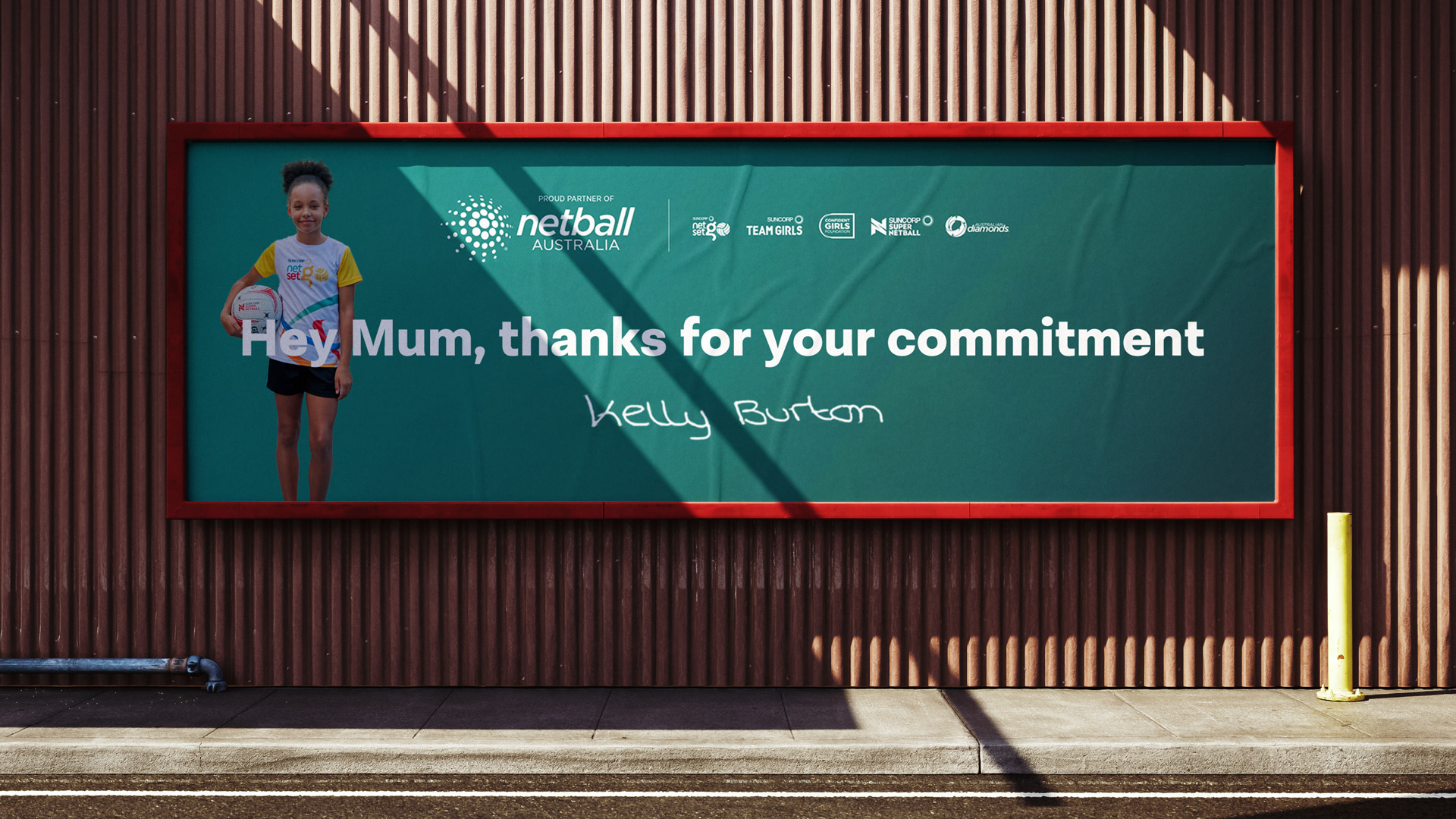 We created a series of billboards that targeted netball parents on their daily commute to offer thanks from their daughters for going the extra mile in supporting their kids’ netball journey.